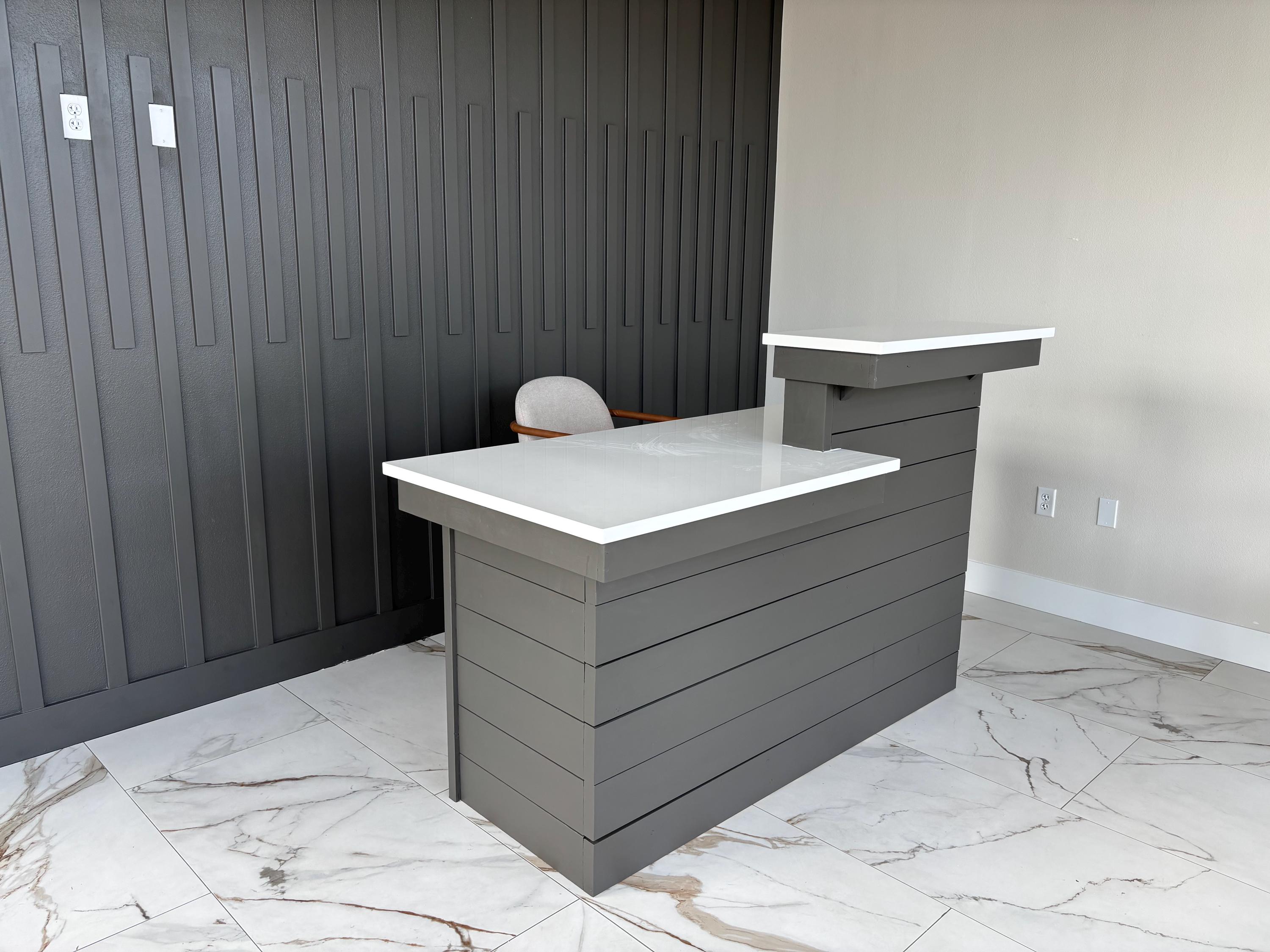 Our unfinished Lavonne sales counter is designed to seamlessly blend innovation and functionality. Featuring a privacy tower, this sales counter not only enhances the aesthetic appeal of your space. It also provides a secure and comfortable area for customer interactions. The ADA drop ensures that all customers can access your services with ease which promotes inclusivity and enhancing the overall customer experience.